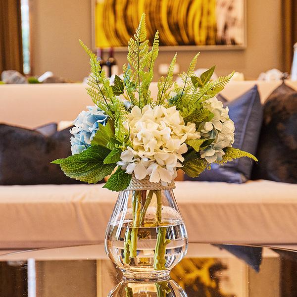 通過假水AB膠,可以將花固定在玻璃瓶內(nèi)。假水AB膠凝固后,看起來就和真的水一樣在玻璃瓶里,花的造型也固定了。假水插花很適合酒店,餐桌裝飾。