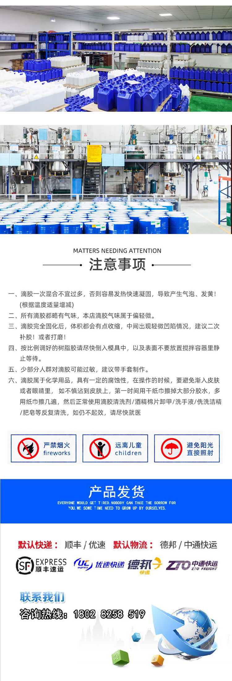 2.根據(jù)可操作時間及用量調(diào)配膠量,避免浪費.當(dāng)氣溫低于15℃時,請先將A膠預(yù)熱至30℃后再進行調(diào)膠,易于操作(氣溫低時A膠會變稠);使用后必需密封桶蓋,避免因吸潮而造成產(chǎn)品報廢。