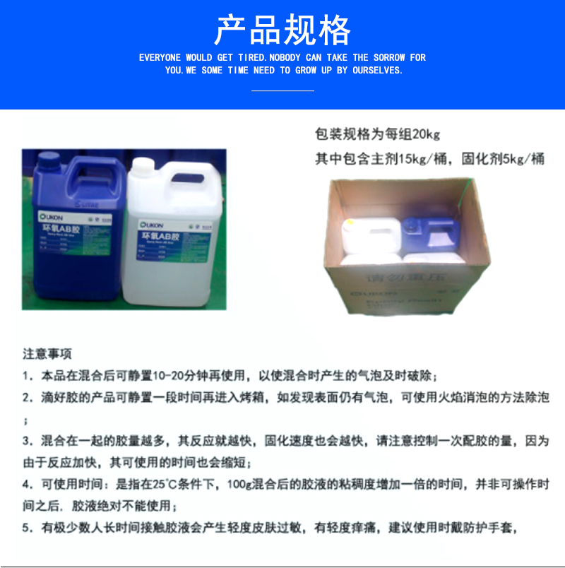 2.根據(jù)可操作時(shí)間及用量調(diào)配膠量,避免浪費(fèi).當(dāng)氣溫低于15℃時(shí),請(qǐng)先將A膠預(yù)熱至30℃后再進(jìn)行調(diào)膠,易于操作(氣溫低時(shí)A膠會(huì)變稠);使用后必需密封桶蓋,避免因吸潮而造成產(chǎn)品報(bào)廢。